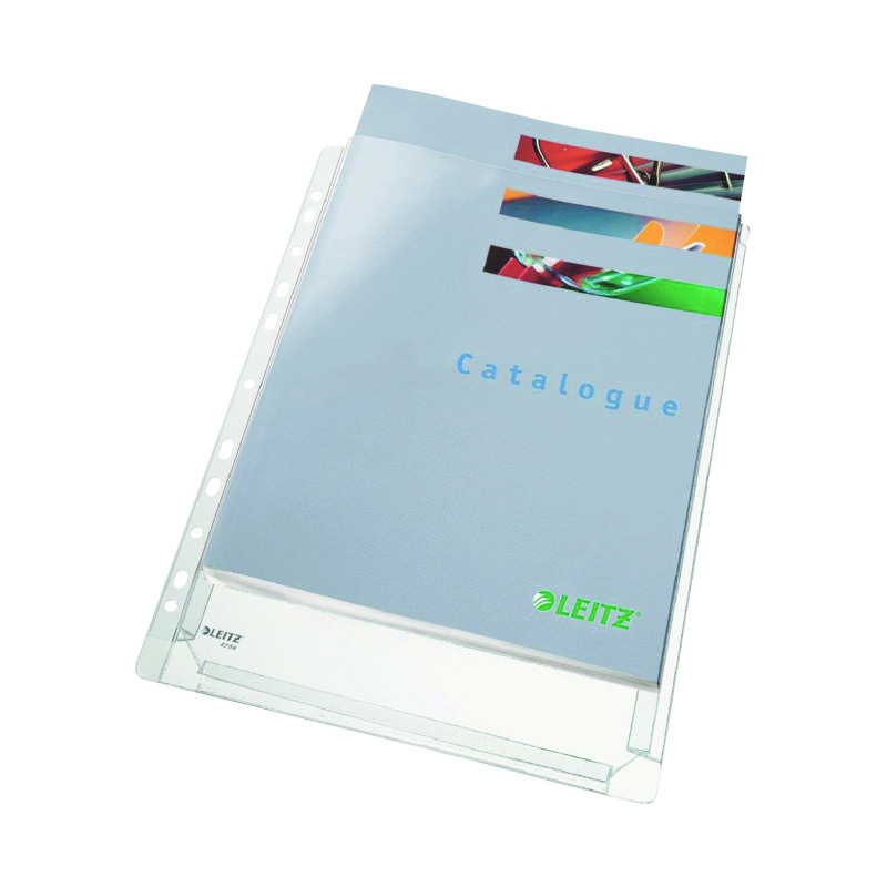 These Leitz punched pockets feature a 20mm gusset which can hold up to 200 A4 sheets. Ideal for brochures, catalogues and bulky reports, the pockets are made from copysafe 170 micron PVC and are top opening for easy access to contents. The pockets also feature a multi-punched strip for filing in standard ring binders and lever arch files. This pack contains five A4 punched pockets.