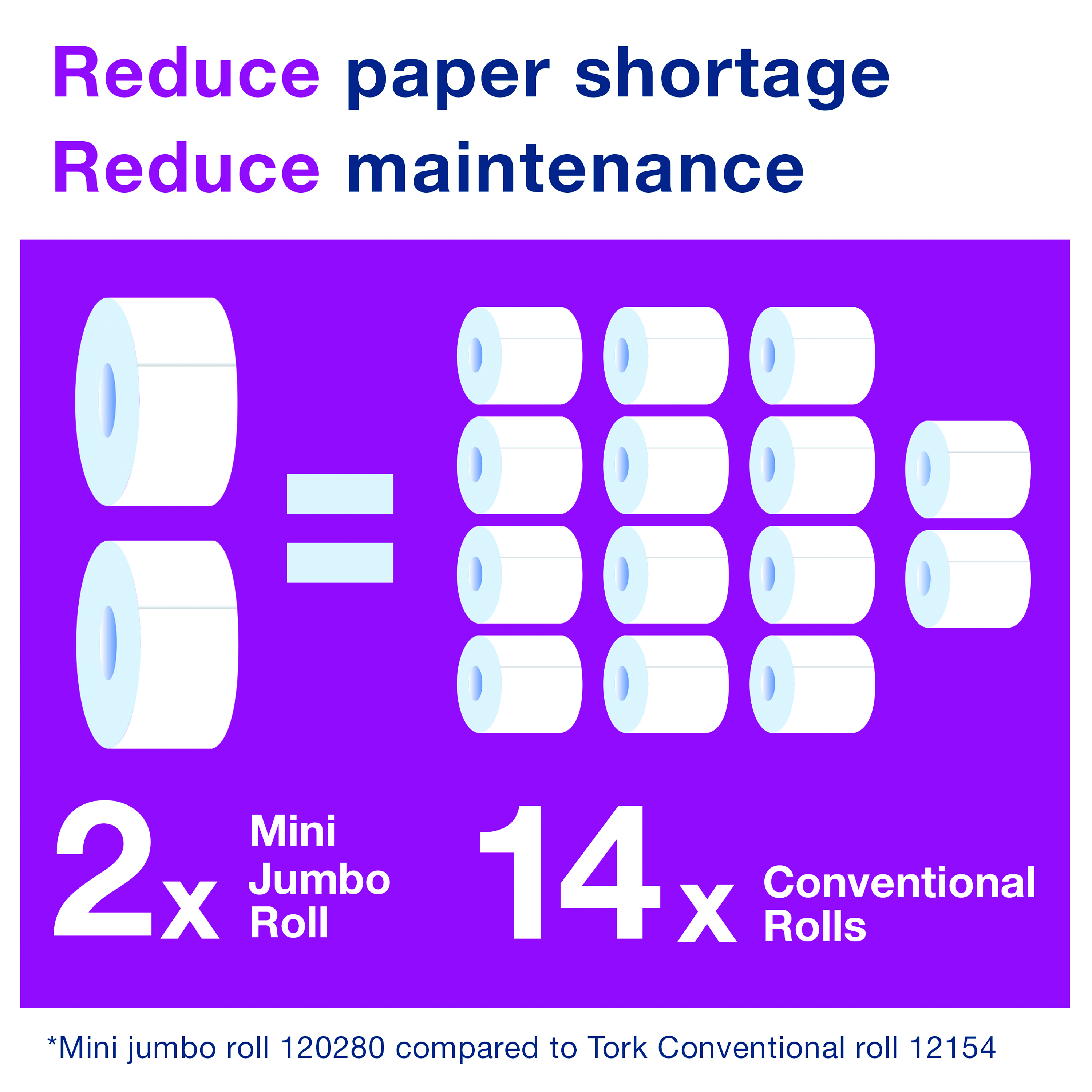 - Save time on maintenance and reduce the risk of paper shortages with this high-capacity jumbo toilet roll